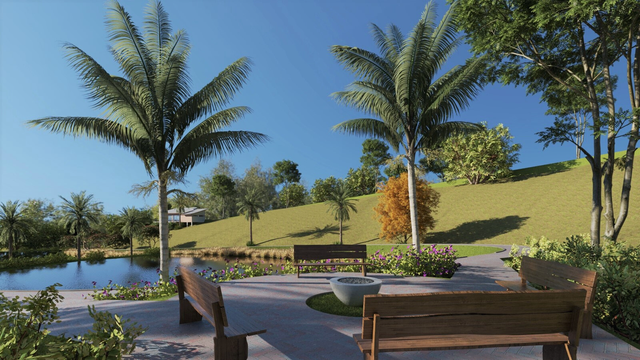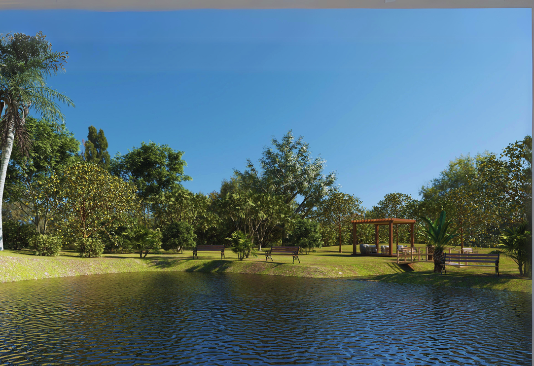 No centro do condomínio, um lago serpenteia entre pergolados de contemplação, oferecendo um refúgio tranquilo. Uma pista sinuosa ao redor convida à caminhada, com a natureza exuberante em cada passo. Aqui, a conexão com a natureza é um estilo de vida, promovendo bem-estar e tranquilidade.