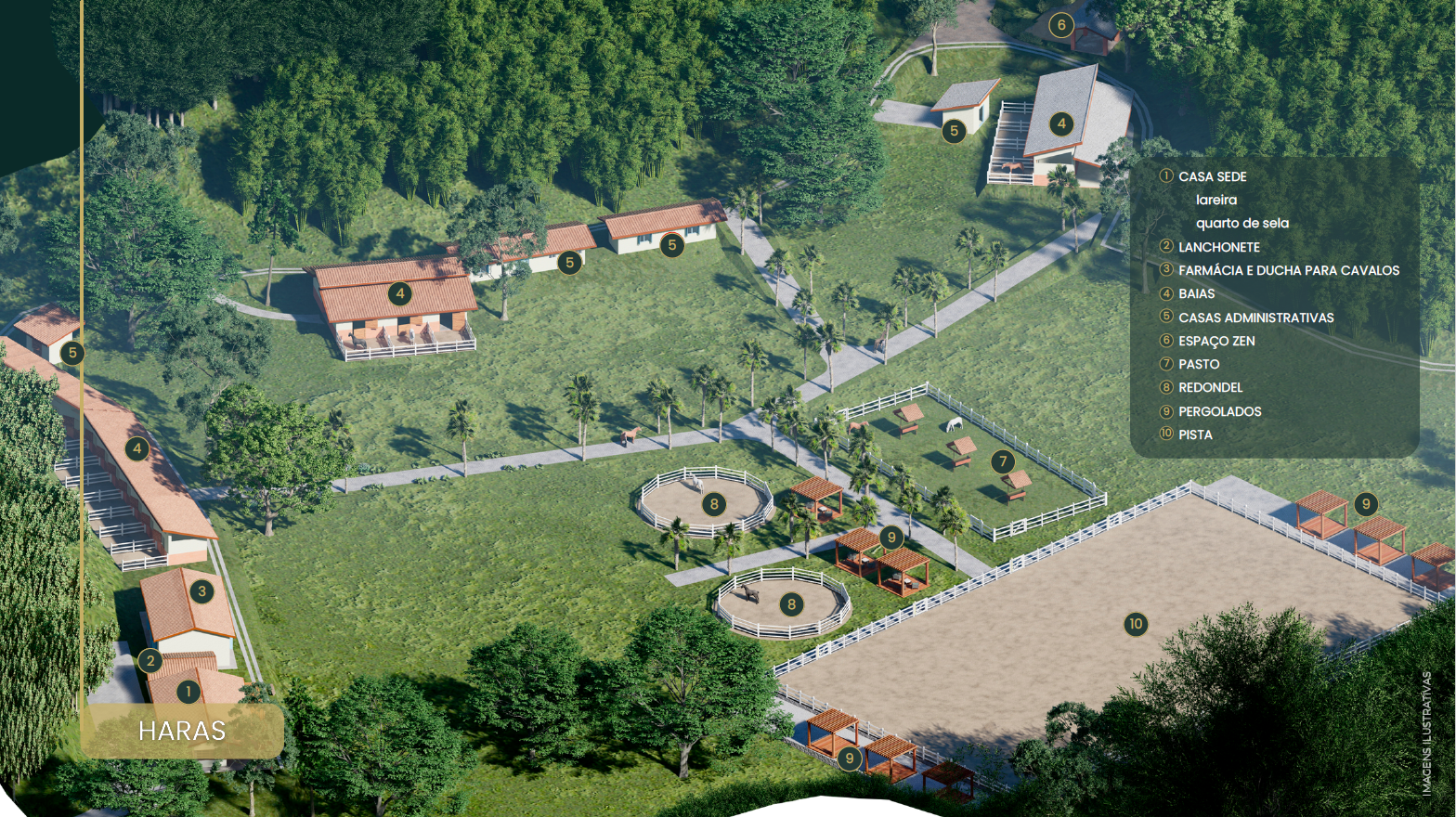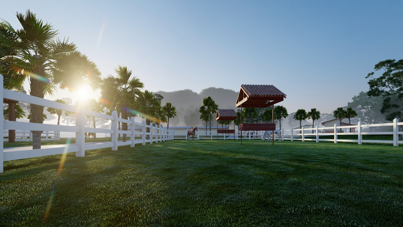Um haras majestoso complementa essa paisagem,